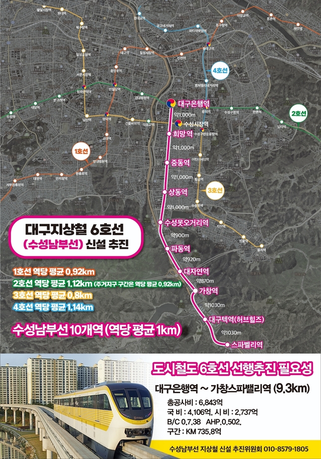 최근 대구시가 공개한 ‘2026~2035년 도시철도망 구축계획안'에 대구은행 본점에서 가창스파밸리까지 연결하는 수성남부선이(지상철6호선) 포함되자 이 지역 주민들은 크게 환호했다.